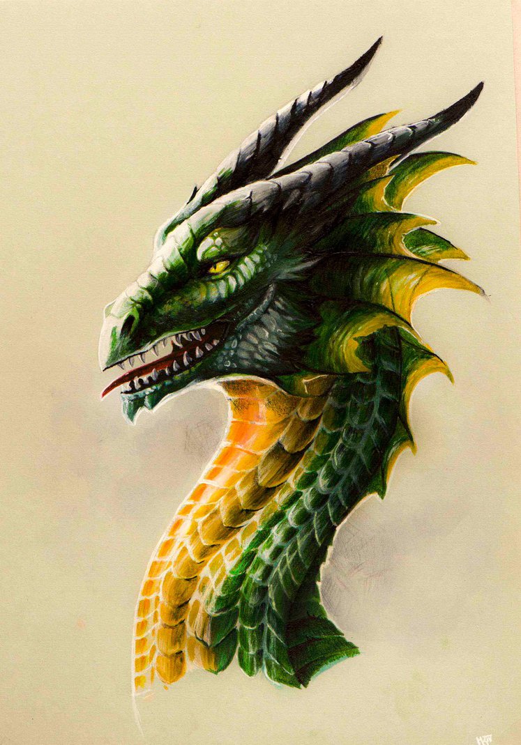 Stínování, odlesky, detaily - parádní. Akorát jenom vrch čumáku (nebo jak to se to u draků nazývá) trochu splývá s pozadím, i když to může být taky mojí obrazovkou. Každopádně to pominu, protože jinak je to skvělý dílo. Na první pohled skoro nelze rozeznat rozdíl mezi digi tvorbou a tradiční tvorbou.
