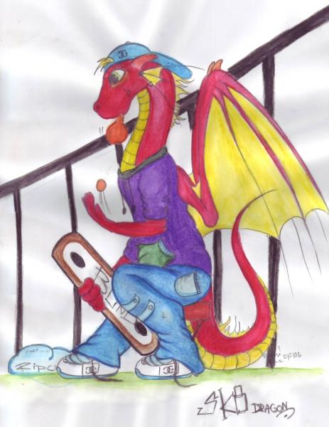muhehe tak včera sem měla blaznivou naladu a tak sem stvořila tohohle Sk8ařskyho dračka XD.Jo to co mu leze z pusy je žvykačka(kdyby to náááhodou někdo neuhadl :D )