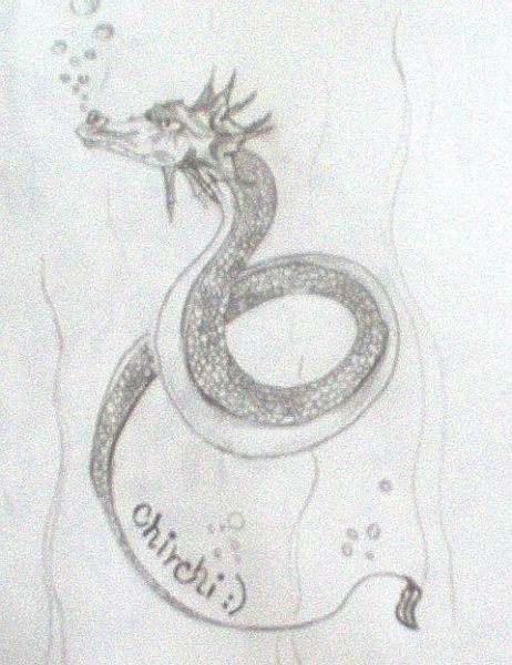 ale mela bys trochu zapracovat na telicku .. prijde mi, ze se ten ocas zuzuje moc rychle, mel by tam byt plynulejsi prechod - takze mozna udelat ho delsiho... a mozna prikreslit nejake male ploutvicky nebo ozdubky, aby to telo nebylo oproti te hlave takove hole