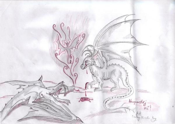 Proč sem to nakreslila?Bylo mi děsně smutně.Puvodně sem chtěla nakreslit jen toho draka co brečí ale pak se mi to zdalo prazdny a jelikož me kamošce umřel pejsek tak sem to tam asi za 2 dny dokreslila.A vysledek je todle....