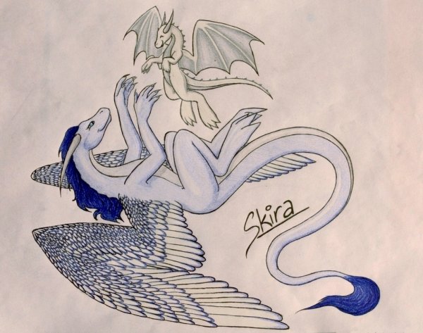 charakter mojí dračí kamarádky Skiry :) Renn je to malé dráče nad ní - nejspíš není její :D obrázek je dělaný na přání, asi jako poslední dobou veškerá moje tvorba :D