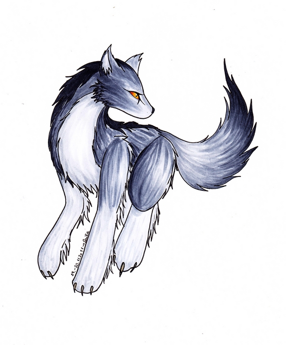 její charakter ve vlčím; chibi forma.