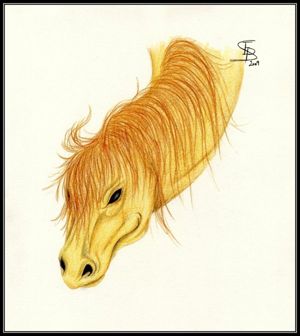 Před časem jsem slíbila obrázek Bonafire, který by mohla použít jako ikonku, a dnes se mi konečně podařilo něco vyplodit. Byl to trochu oříšek, protože jsem zvyklá kreslit draky s rohy, ostny nebo aspoň s ušima, takže mě to furt svádělo něco si tam přidat, nicméně snažila jsem se co nejvíce držet instrukcí. Jen barvu hřívy jsem trochu ztmavila, aby nezanikala ve zbytku těla - má být stejné barvy jako šupiny. A chybí pozadí...