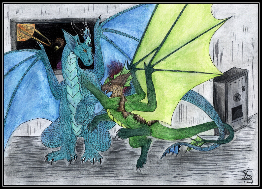 Jinak abych pravdu řekla, ani nevím, jakou je Rimmer barvou. Obvykle má šupiny v takové té lesklé zelené, sem tam do toho modravý odlesk, ale zjistila jsem, že je nějaký chameleoní drak, protože umí měnit barvu.