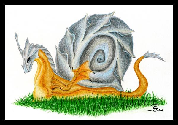 Tak jsem přemýšlela, jakým dračím mutantíkem bych zas jednou šokovala a jako první zvíře mě napadl hlemýžď. Takový podračený, lehce obrněný šneček. :oD