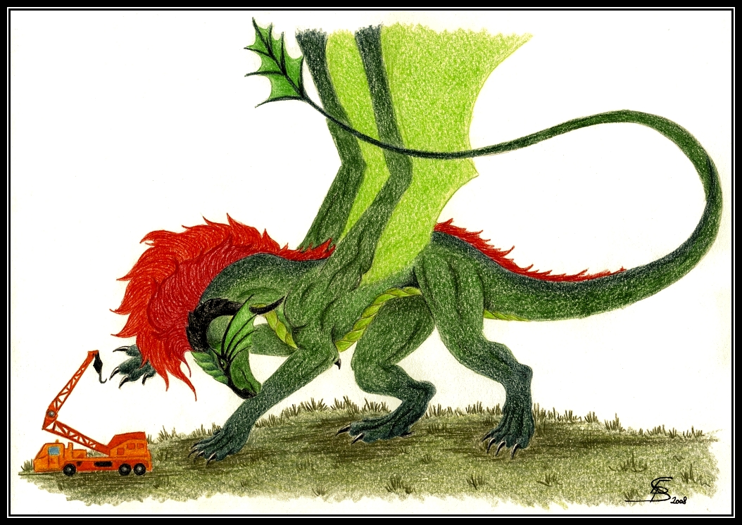 Ten jeřáb je kreslený podle mého úžasného jeřábu, který mám doma (díky čemuž vím, že to přední kolo má skutečně být víc vzadu, ale udělala jsem trochu větší tu kabinu - asi o dva tři milimetry, tak proto mi to přijde tak nějak nesprávně ;oD) a když jsem ho půjčila na hraní naší pse, tak ona do něj šťouchala hlavou a tím ho rozjížděla.