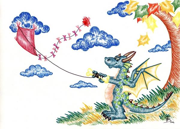 Dra: Na nic nemusíš kašlat, klasický drak "Baba" má váhy právě jen z obou konců svislé tyčky. Jiná věc je poloha vah (místo úvazu), ale protože perspektiva je "potvora", je těžké usoudit, zda je vše v pořádku a proto je nejlepší předpokládat, že ano. Jinak nechápu (když už je to druhý Tvůj obrázek, kdy Drak pouští draka), že jsi tenkrát nevylezla z čajovny a nešla pouštět "na ostro", ne jen na papíře...
