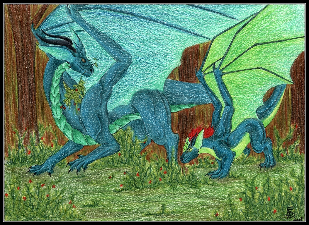 Nádherný obrázek. Draci na malinách, to by mě ani ve snu nenapadlo. A povedlo se ti to parádně, nejen pozadí, ale obrázek celkově. Snad jen škoda té nůše, na tu jsem byl docela zvědav, když jsem četl popis