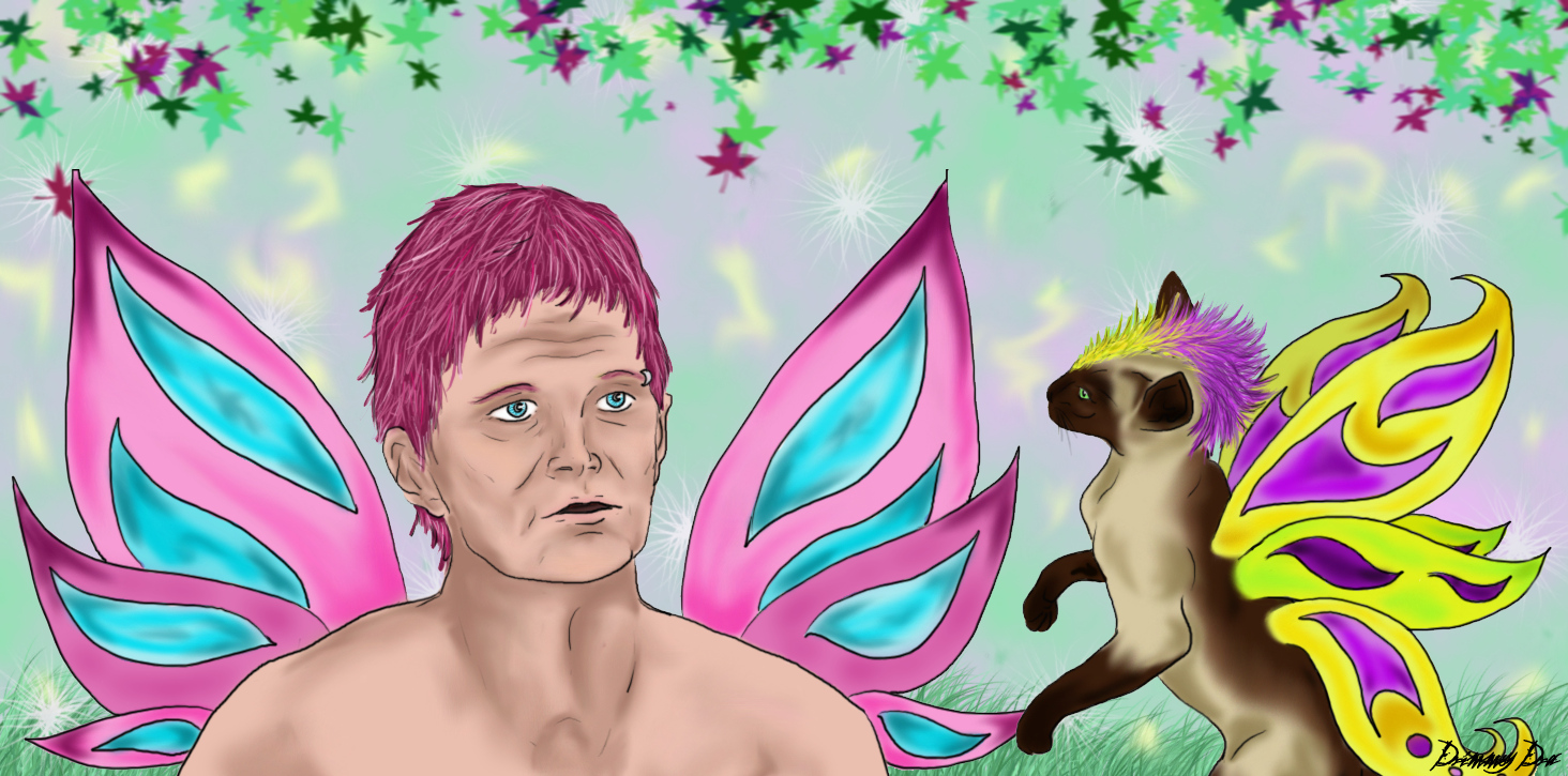 Ta fialová - to je jen vílácký přeliv (stejně jako u Neila růžová - jsem o růžové uvažovala i u sebe, ale to už na mě bylo vážně moc XD), aby mi to ladilo ke křídlům. Pod tou fialovou sem tam ještě trošinku prosvitne na konci hřívy přebarvená červená - byla moc vyzývavě řvavá na tak poklidnou víláckou atmosféru. ;oD