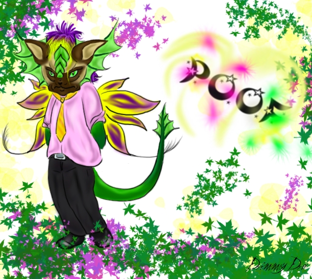 Původně jsem chtěla kreslit něco úplně jiného. Ale úplně jiného, jak významem, tak atmosférou... ale nějak se mi to zvrtlo, začala jsem si hrát a vzniklo tohle. Mám teď žlutofialovou hřívu, to je moje vílácká kombinace. Takže je ze mě prakticky už asi opravdu vílák, jenže... neumím se odpoofnout a to mě děsně štve. A navíc ta košile... kdo na mě navlékl košili v tak děsné barvě? A proč mi Neilie a Berísek za zády poofají a smějí se mi, že já to neumím? A ještě do toho všeho to Hedelixové listí...