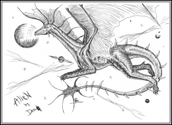 AlieNe, dělala jsem, co jsem mohla. Ale poslední dobou fakt nějak mrším stínování, takže se omlouvám, že to semtam vypadá trochu divně. Navíc ufodraka jsem kreslila poprvé... XD