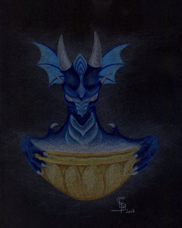 Už dlouho jsem nevložila nějaký obrázek, takže je tu zase jeden na černý papír, dělaný už před několika měsíci. Je kreslený podle jedné dračí fontánky, kterou jsem viděla na netu - bohužel, stránky jsou už nějak nefunkční.