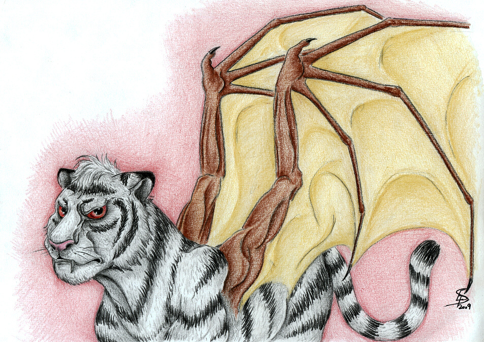Řeknu Ti, Ruchiel, už jsem z toho obrázku pro Tebe měla pomalu noční můry, jak jsem Ti ho furt slibovala a nebyla jsem schopná ho dodělat... no, tak tady konečně je. Doufám, že se bude líbit, jsi můj první tygr. Náčrt vznikl původně v práci už... děsně dávno. A lehce mě k němu inspiroval tenhle obrázek: