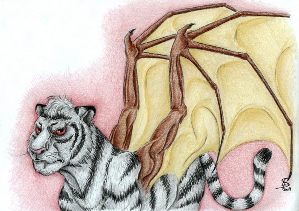 Jinak se omlouvám za ty zuby... nejdřív mi vůbec nešly udělat, a tak dlouho jsem se s nima mořila, až jsem na ně nakonec zapomněla... takže jsou tam dodělané dodatečně a je to vidět. A to stínování blan křídel... mheh, vůbec nevím, co jsem to tam vyváděla. :oD No, máš slíbený 100% ještě ten jeden obrázek, tak snad se mi ten povede líp...