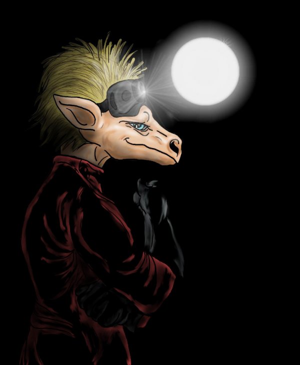 Odlesk v brýlích, barva pláště a rukavic *miluje tmavé barvy a černou obzvlášť* a také doslova (možná)Zabiják ve tmě, on prostě je ve tmě, nevím moc jak jinak to popsat