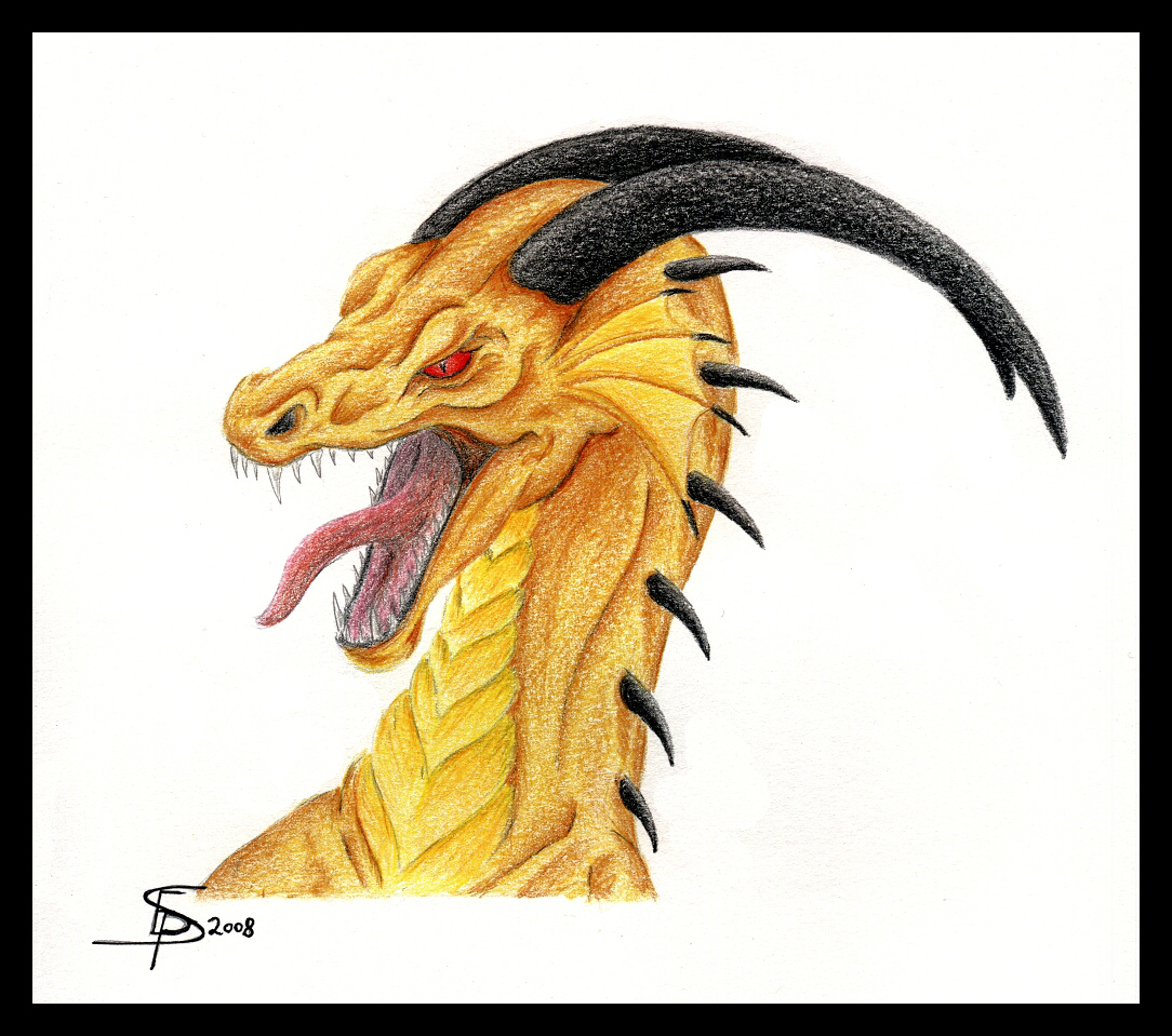 Je to sice kreslené podle předlohy (neumím z hlavy draky s otevřenou tlamou), ale snad to nebude vadit. Tentokrát si i pamatuji čas, co mi kreslení zabralo. Vesměs 3 hodiny práce, dávala jsem si záležet. Líp Tě už, Motigu, asi nezvládnu...