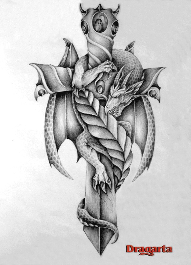Sice teda ten drak by měl asi hodně pružnou páteř, kdyby se měl takhle obmotat, ale jako obrázek je to pěkný. Ta dýka je hezky detailní a na drakovi se mi líbí ten styl šupinek.