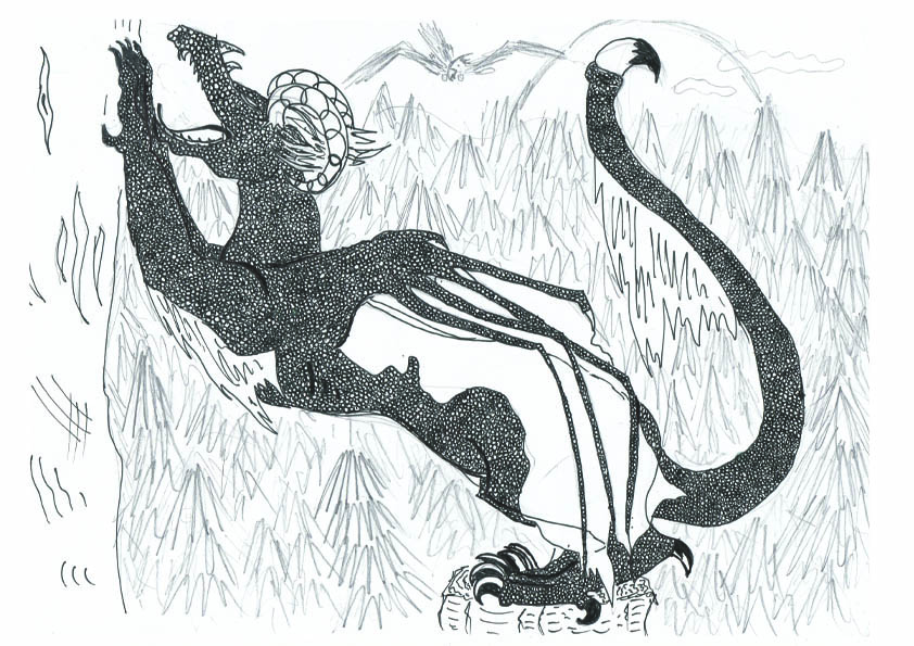 Mno tak toto je dračí ráno jak si ho predstavuju ja.Řečeno po dračim jen se protahnu a letim.jo a za tu caru pod kridlem se omlouvam mela sem ju tam na zacatku a zapomela sem ju vygumovat ale jinak sem spokojena.
