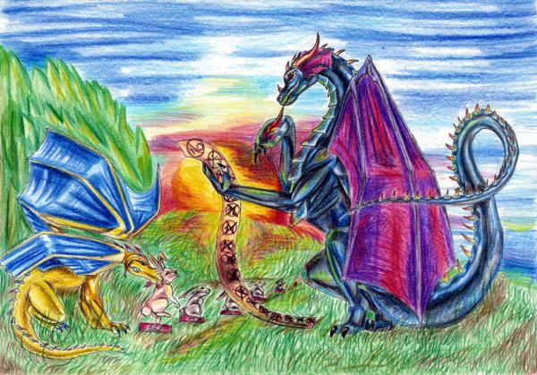 další podtext tenhle obrázek má že mi je zase o rok víc.. na to že mi ten tu obrázek leží od 20.4 je dost že jsem ho dokončila XD dost keců.. btw.. moti.... to že ten drak je ,,zlatý" niiiic neznamenaaa a niiiic nema naznačovat XD