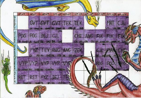 My ešte ani normálny rozvrh nemáme... Vraj sa nejakej učke zmenil jej osobný rozvrh a teraz sa to prerába, alebo ja neviem čo to tam majú za chaos. K obrázku - mne sa najviac páči ten veľký červený, ktorý tak krásne rozdrápal matiku