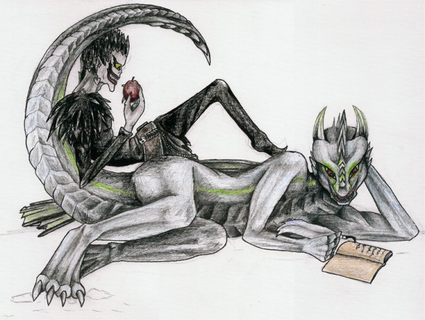 pokud to působí zle a démonicky .. byl to záměr... jak zde bylo řečeno shinigami je buh smrti a ten kdo používá death note je defakto pomalu posedáván zlem... leč si to neuvědomuje ten děník ho mění k šílenství zabijáka ;)