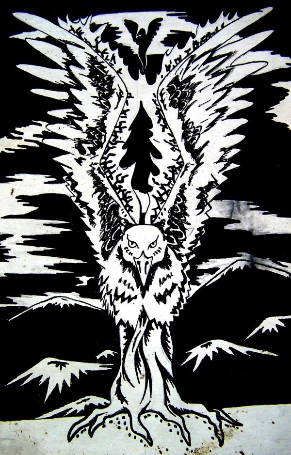pěkný linoryt, zrovna se na tuhle techniku chystám, ale potřebuju ještě nabrousit náčiní, z čehož mám panickou hrůzu :D Ta orlice se mi moooc líbí, očka jsou sice trošku nakřivo, ale ne tak moc aby to přespříliš vadilo. Co se toho propojení se stromem týče tak je dost vymakané, jediné co mi trošku nesedí jsou křídla, přijde mi jako kdyby byla zlomená, asi by bodla nějaká ne tak ostrá linie...