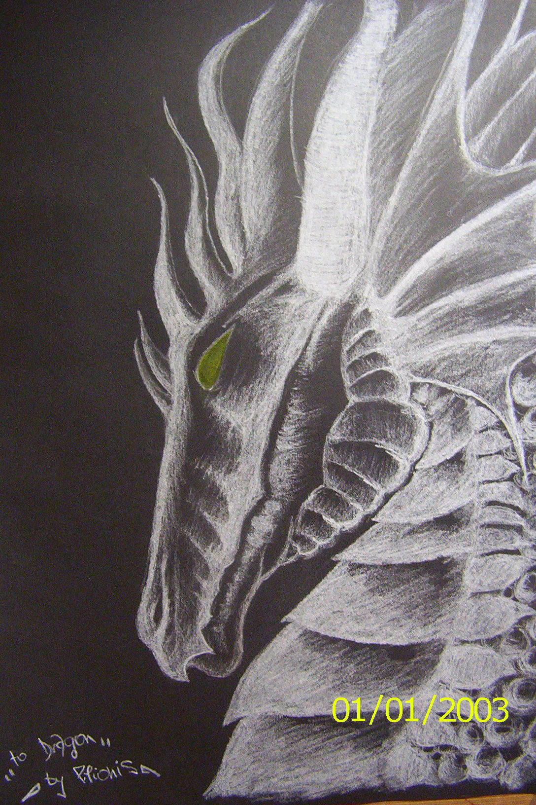Tohleto je obrázek pro Dragona. Slíbila jsem mu to už dávno a teď jsem nemocná, takže jsem měla dobrou příležitost. Je to na černém papíru bílým pastelem v tužce. Luxus, co?