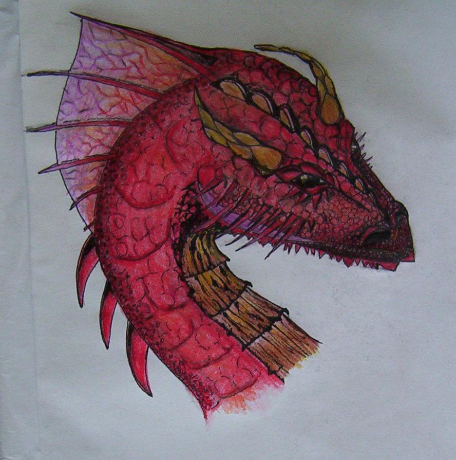Můj první dráček nakreslený barevně. Omlouvám se za papír a taky za kvalitu. Je to pouhá fotka. Naskenuju to až v pondělí.