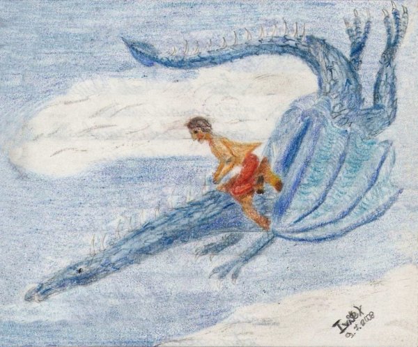 Tento obrázek jsem kreslila chvilku po tom co jsem dočetla Eragona. Je to návrh ilustrace ke kapitole ,,Dračíma očima“. Safirau jsem nakreslila tak jak jsem si jí představovala.