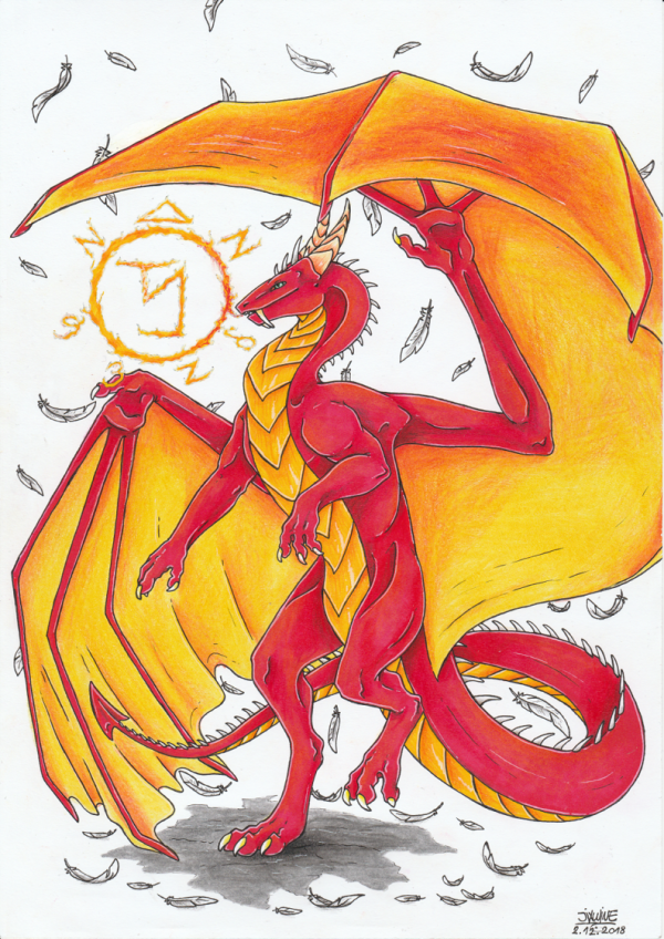 To víš, spící draci...to by nedopadlo dobře :D by vypadala buď jako by ji něco sejmulo nebo si něčeho fetla :D radši peříčka a symbol.
