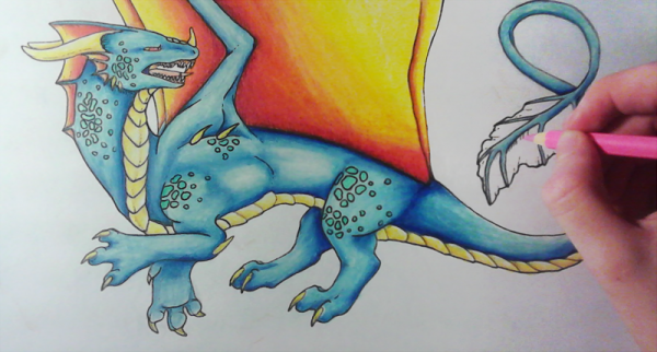 Narozeninový dárek pro Saurro, které se škodolibý malíř pokouší vybarvit ocas růžovou pastelkou! :D