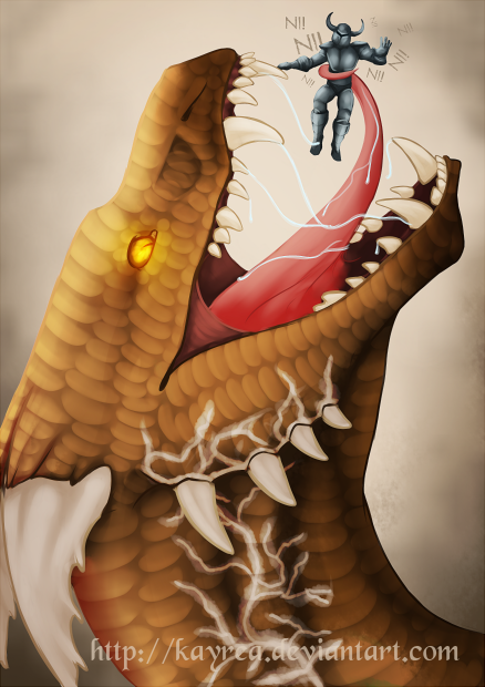 Ilustrace pro český furcon ČeSFuR, která bude značit jídelní prostory! Vzhledem ke středověké tématice mě hnedka napadl drakouš a poslední chvilky nebohého rytíře (who says Ni!) :D