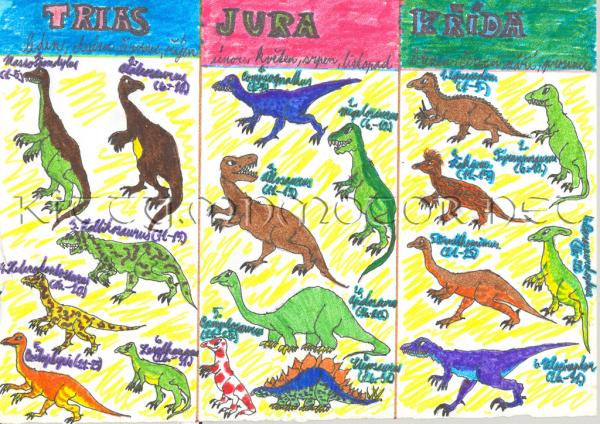 jinak kdybyste se v tom neorientovali, tak pod Trias, Jura, Krida jsou napsane mesice, ktere tam spadaji a u kazdeho dinosaura je pak datum, pro ktere je znamenim