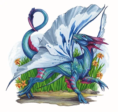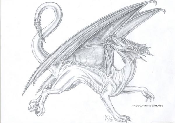 Sice to je jen skica (ještě bohužel nedodělaná), ale přímo mě fascinovala svojí skutečností, či jak to lépe nazvat. Líbí se mi to, že to není ten klasický obrněný vysvalený drak, ale čistě ještěrkovité, plazovité stvoření s nedokonalostmi danými přírodou (tím myslím ty záhyby kůže u svalů křídla, za krkem...).