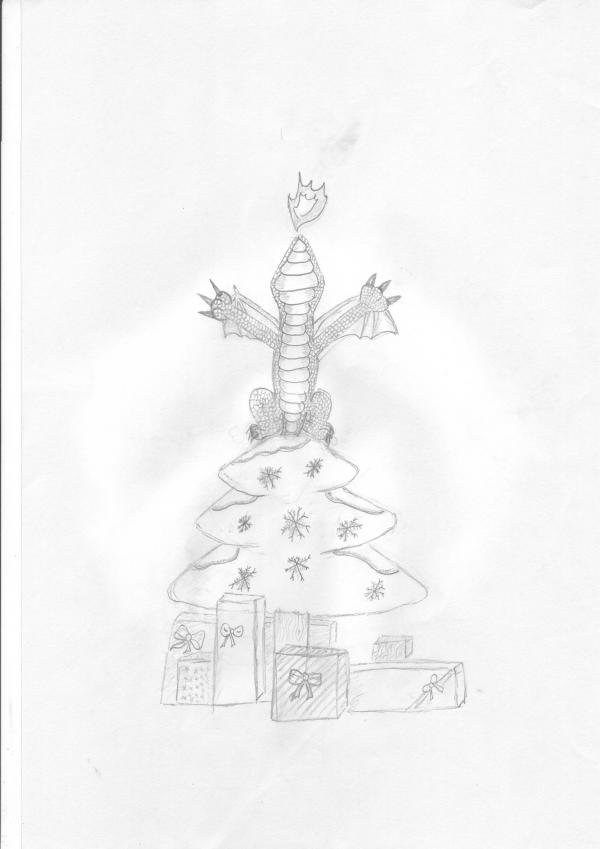 mno , pořád jsem nevěděla jak ten obrázek nakreslit. Nakonec jsem došla k takovému komixovému závěru , protože nakreslit reálného draka jak dělá hvězdu... mi prostě nějak nešlo do hlavy. Teprve teď když ten obrázek takhle vidím si uvědomuju kolik jsem udělala chyb....můžete hledat XD