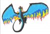 Blueflame - má druhá dračí identita spáchaná pastelkama asi před dvěma měsícema. Cca 3-4 hodiny, dalo mi to celkem zabrat. Anatomie a stíny - mno... na dovolené.