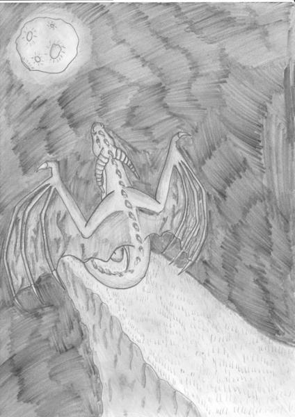 Drak na útesu pozorující měsíc...