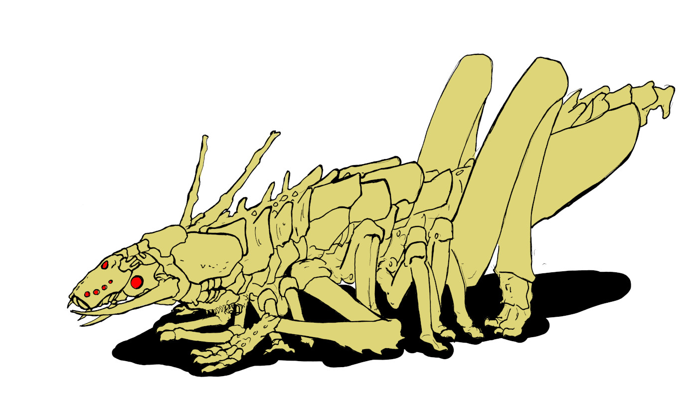 | Toto je koncept obrázku, který vlastně nikdy ani neměl vzniknout, ale je to původní zamýšlená podoba "Hmyzodraka" - mého předchozího obrázku. Protože ten vznikal částečně se zaměřením na zveřejnění na tomto serveru, rozhodl jsem se mu ve výsledku dát víc dinosauří pózu a vzhled, aby víc připomínal draka, ale chtěl jsem alespoň tak trochu zachovat původní myšlenku, že je to přece jen tak trochu skládací drak (v podstatě využití hmyzích mimiker). Nicméně hlavní důvod tvorby byl v tom, že jsem na serveru aragorn.cz dostal od jedné uživatelky k hmyzodrakovi rozsáhlou kritiku a tak jsem si řekl, že stojí za to rozšířit mou odpověď i o původní koncept (byť reálně vznikl až teď), aby bylo vidět lépe i pozadí tvorby.