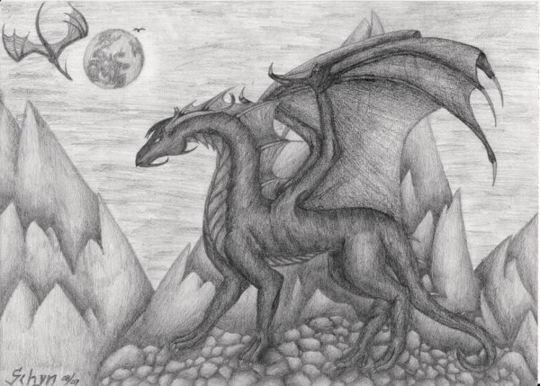 ehm...tak tohle bylo tak na nervy že už jsem myslela, že to hodím do záchoda xDD trvalo to 2 týdny!! Hrůza.. Jo ale je to nejnovější, takže máte představu jak rychle jsem se asi vyšvihla nahoru xD mno..je to jen tužka měkká. A taky tvrdší, abych překryla nedostatky... ufff xD mno podle mě je to fajn ne? Jsem s tím spokojená, a toho draka v dálce dokreslil můj táta xD