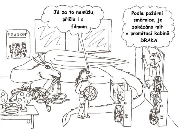 A ta věta:"...přišla i s filmem." To je jak kdyby ji zabalili do krabice i s tou filmovou páskou! To se potom nedivím, že má tak špatnou náladu. BTW ten plakát Eragona v pozadí nemá chybu