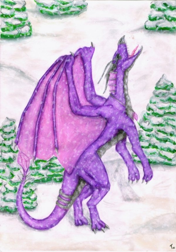 Tak se také pochlubím svým dílkem do letošní VOV. Nakreslit jsem měla Lindass a nějaký zimní motiv, tak tu je :) Padající sníh jsem kreslila prvně a taky to tak vypadá >.< Dračice je nakreslena rozmytými akvarelkami, pozadí vodovkami a tu a tam jsou některé odlesky zvýrazněny bílou gelovkou.