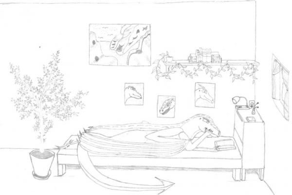 Mě se to líbí, je to pěkně spracované. Ten pokoj s těmi obrázky na stěnách a ty kytky (hlavně se Ti hodně povedla ta v tom květináči) tomu dodávají tu správnou pohodovou atmosféru, takže mi ani nevadí, že ten dráček je takový jednodušší.