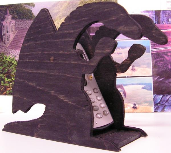 | Malovat nedovedu. Moji draci vypadaji jako vsechno mozne, jen ne jako draci:) Tak alespon posilam fotecku stojanku na mobil, ktery jsem si udelal o letosni dovolene. Puvodne mel mit i rohy a drapy,ale pouzity material, preklizka, mne donutil znacne zjednosit obrys. Ted to s trochou fantazie vypada jako siuleta sediciho draka proti nocnimu nebi. Snad se bude libit:)