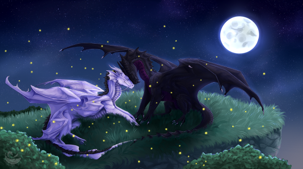 Další má pořádná digitální práce. :D Byla to pořádná fuška, zvláště jsem měla hodně problémy s černým drakem, pořád se mi zdá hodně tmavý, že není skoro ani vidět... Ale co už, s obrázkem jsem i tak hodně spokojená, bavil mě, mám ráda romantiku :)