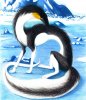 Především doufám, že v něm vidíte draka, protože to je drak, východní cosi, co emigrovalo na jižní pól a získalo to barvu tučňáka císařského. kdyby neměl takovou hřívu, viděli byste maličké růžky, které ve fázi skici a podmalby byly ještě patrné.