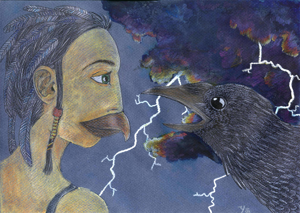 Yeyro!!!! Já ti děkuji, děkuji, děkuji, děkuji, děkuji a prostě moc děkuji!!! Tohle je (oproti tvému vyhrožování x)) vážně povedené, naprosto mě nadchlo, jak sis poradila s tím zobákem a celková kompozice s vránou a bouřkovými mraky mi do očí skorem vhání slzy dojetí...
