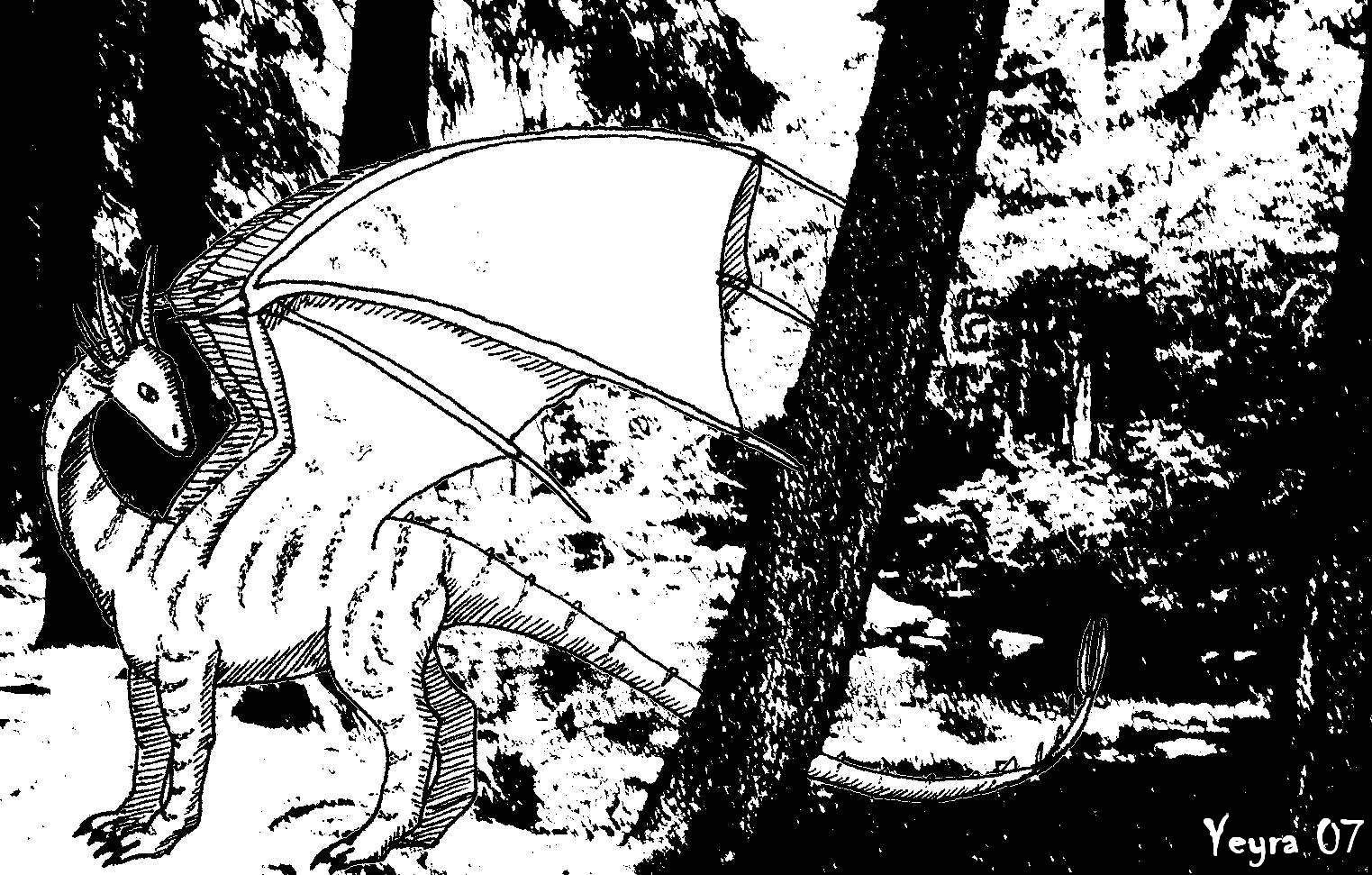 Dráček vznikl tuší v pc jsem upravila jednu ze svých starších fotek a draka do ní přidala, asi 2h práce, pokud by vás to zajímalo, existuje i verze, kde je pozadí normálně barevné