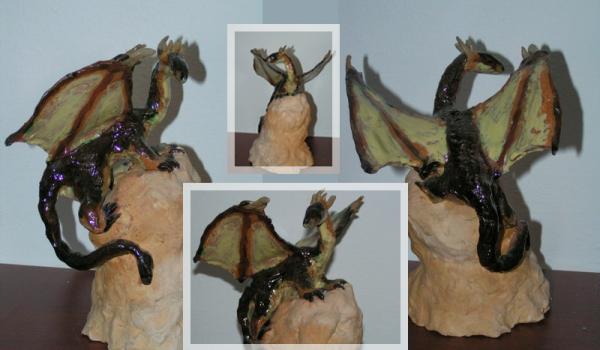 Tak jsem se jednou pokusila o draka. Dělala jsem ho asi 4 hodiny a další měsíc se děsila, aby v něm nezůstaly bubliny a v peci nepraskl. Přežil a já se za to odvděčila mizernou glazurou... Měl být zelený a pokazila jsem kosti na křídlech...