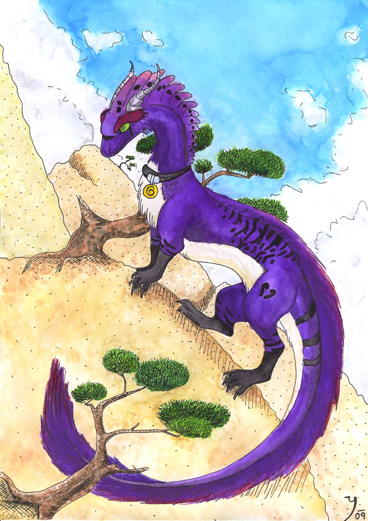 Bonsaje se ti moc povedly. Charakter draka je velmi elegantní, to se nedivím, že se ti dobře kreslil. Docela mě zaujalo, jak šplhá na tu stěnu. Je to "na tření" jak by řekli skálolezci...