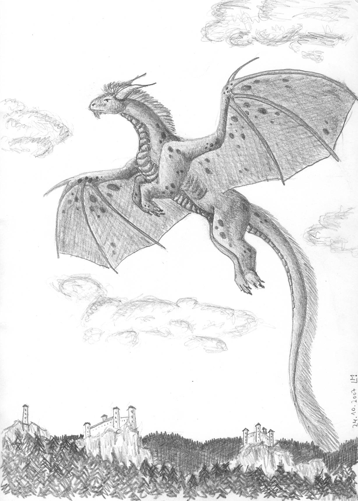 Namet se mi skutecne libi a to vcetne onech hradu na pozadi [celkem zalidneno], co se Draka samotneho tyce, ma zvlastne jakoby kratsi cumak, coz jest zvlastni a podle meho paradni. Pohrat si trochu vice se stinovanim a oblohou, aby vse bylo trochu kontrastnejsi a ne tak ploche a jednalo by se o paradni dilko - myslim, ze kritizovat neni na miste, jen tak dal...